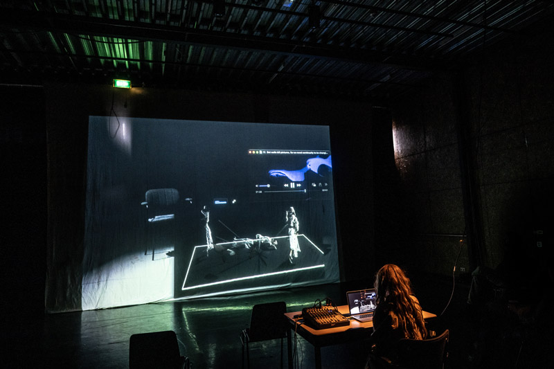 We hebben een archief van data samengesteld waarin live bewegingen uit een specifieke scène van het stuk worden gedocumenteerd en gedigitaliseerd, met behulp van verschillende technologische middelen. Dit archief dient als een verhelderend hulpmiddel om deze uitvoering als data te analyseren. Door beweging in een digitale omgeving te fragmenteren en te transformeren, bieden we het publiek de kans om creatieve vrijheid te ervaren via interactie en manipulatie met de opgeslagen data in het archief.