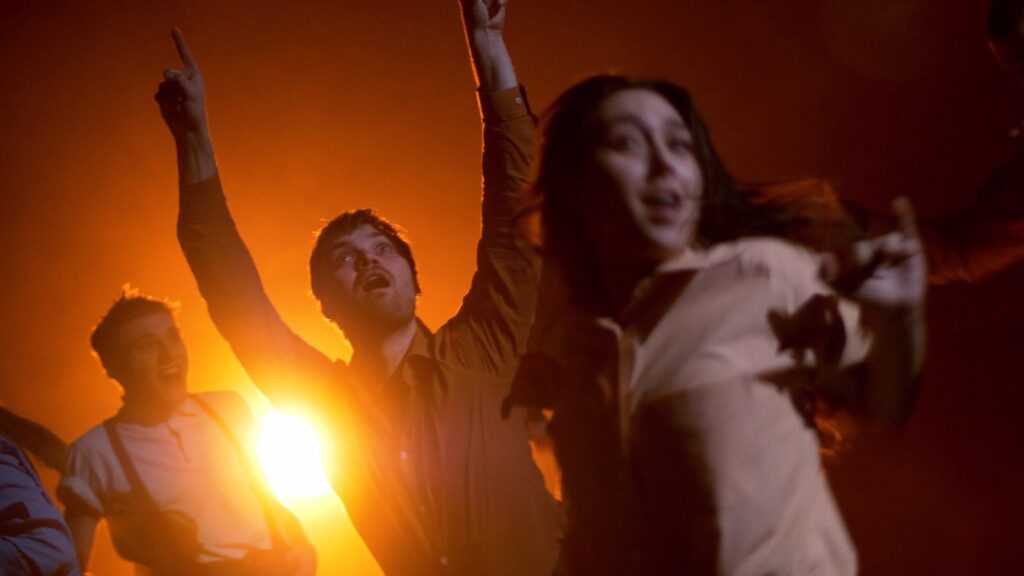 Vijf jongvolwassen arriveren op de locatie, ze lijken een bijeenkomst voor te bereiden. Een paar krukjes worden opgesteld, een snoer worden verbonden met luidspreker en microfoon, een vlag wordt geplant.